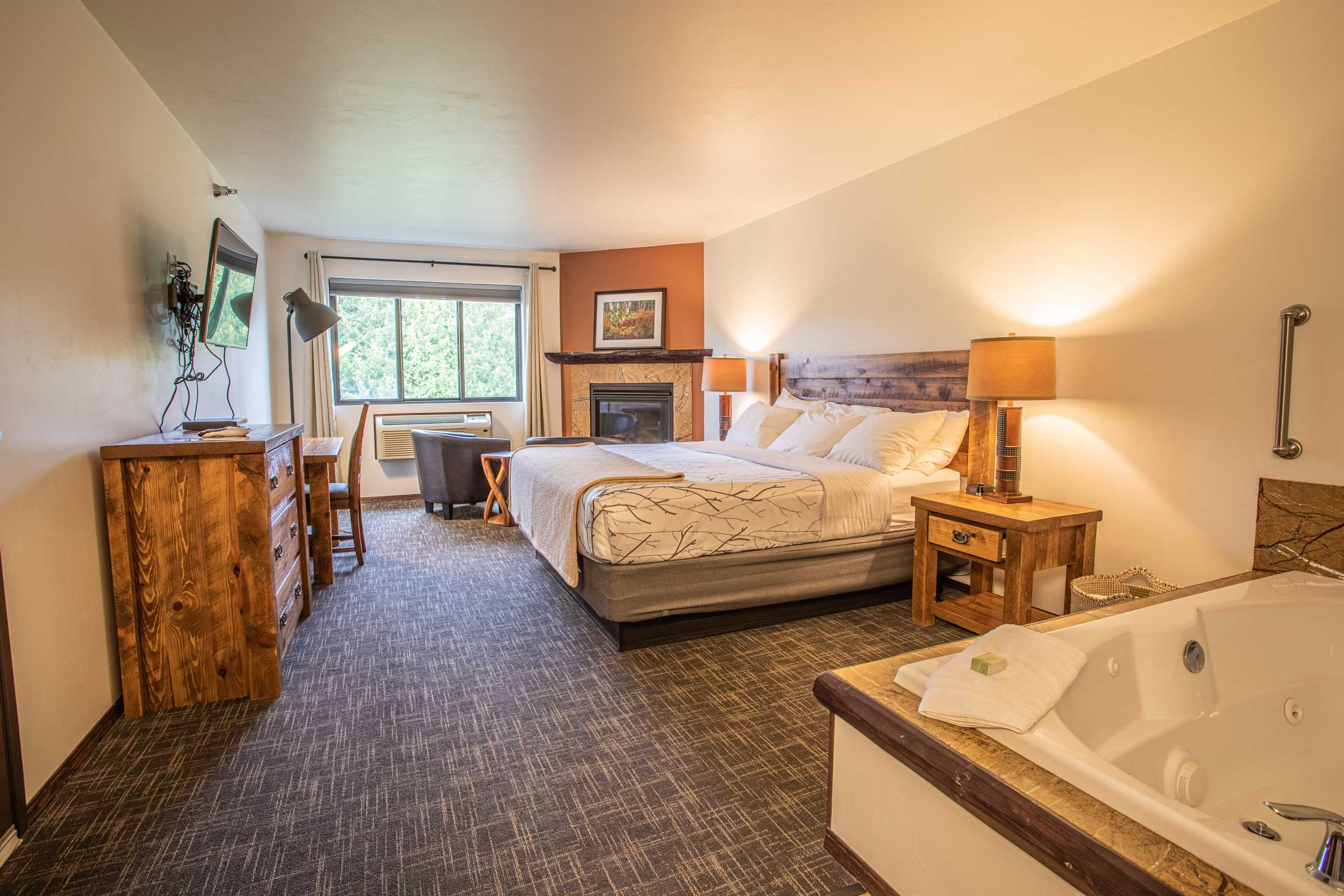 Each King Whirlpool room has unique decor and ambiance, from the cozy, carpeted rooms to our rustic and outdoorsy Lodge Rooms. With varying amenities such as fireplaces and rustic furniture, you’ll find a room that is perfect for your vacation needs. As always, if you have any questions or need help booking your perfect getaway at our romantic hotel, don’t hesitate to call us or email us!